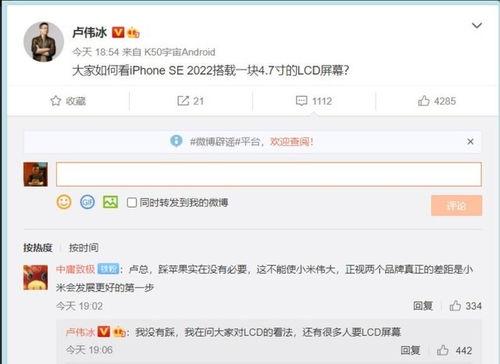 最近手机圈可是热闹非凡呢!卢伟冰,这位手机圈的大佬,又有了新的动态。这不,他的微博上又爆出了最新消息,让粉丝们兴奋不已。今天,就让我带你一起看看卢伟冰的这条微博,看看他都说了些什么吧!